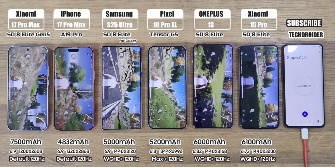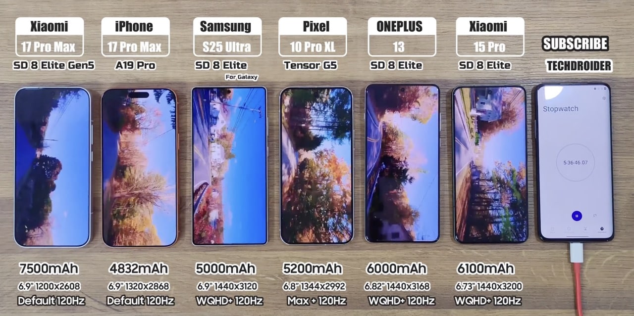 ช่อง Techdroider ทำคลิปเปรียบเทียบแบตเตอรี่ของเรือธงชุดใหม่ออกมาให้เรารับชมกันอีกแล้วครับ รอบนี้มี 2 เรือธง Pro Max อย่าง Xiaomi 17 Pro Max และ iPhone 17 Pro Max มาร่วมทดสอบกันด้วย ซึ่งผลลัพธ์แอบเซอร์ไพรส์อีกแล้วครับ!