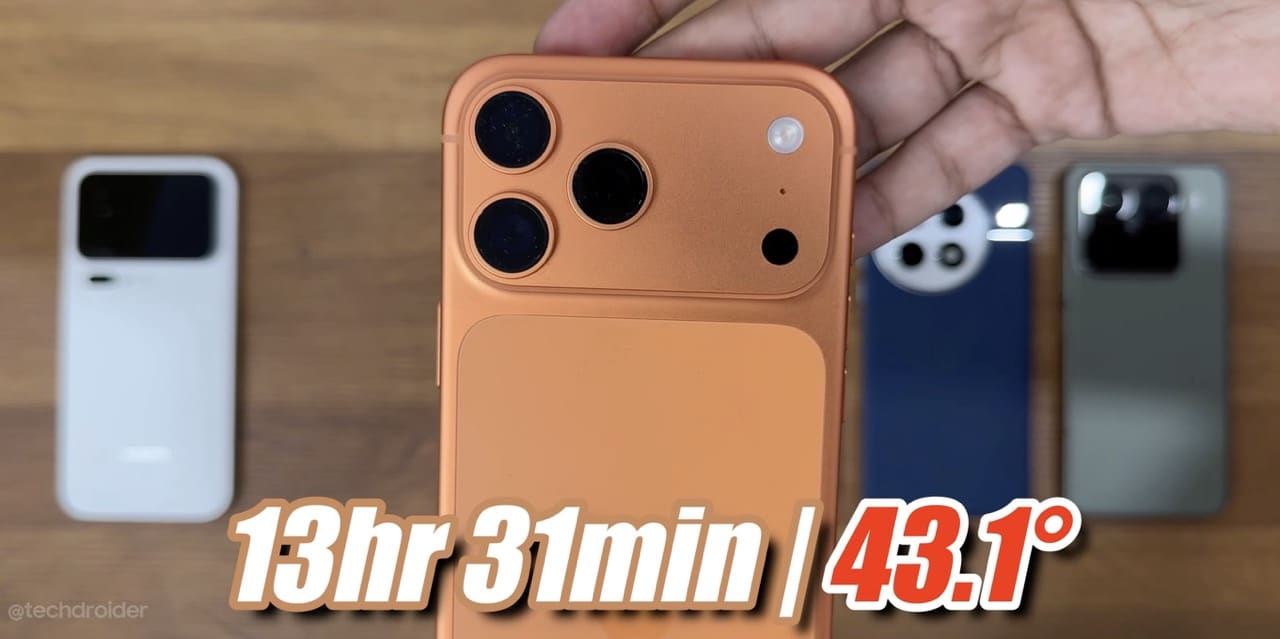 - iPhone 17 Pro Max = 13.31 ชม. | ความร้อนสูงสุด 43.1º