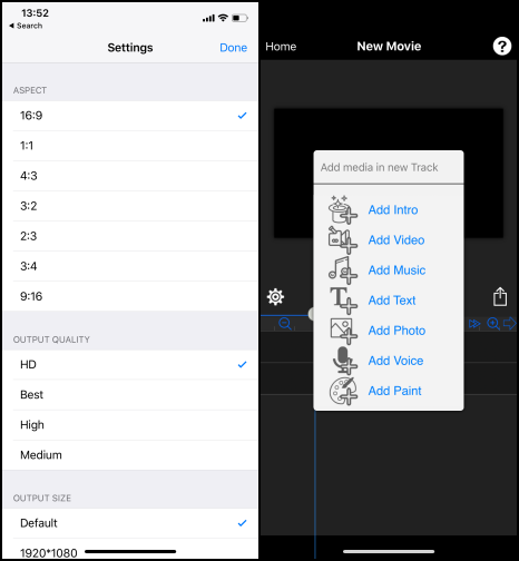 แอพ MovieSpirit – Movie Maker Pro สามารถใช้งานได้อย่างง่ายๆ โดยมีฟีเจอร์หลักๆ สามารถเพิ่ม Intro, Video, Music, Text, Photo, Voice, Paint ลงไปในวีดีโอได้