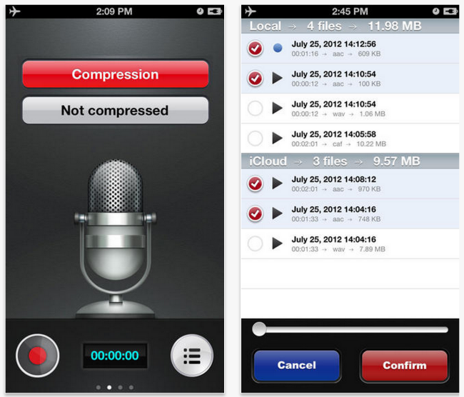 Recording Pro แอพสำหรับบันทึกเสียง สามารถ convert เป็นไฟล์ mp3 และ บันทึกลง Camera Roll ได้เป็นต้น ปกติ $4.99 ฟรีจำกัดเวลา