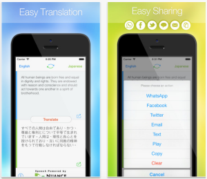 Easy Translation ~ Easily translate text or voice from/to English, Arabic, Turkish, Spanish, Italian, Chinese, French, German, Japanese, Korean, Spanish, Russian, Portuguese, Dutch, Czech, Greek, Finnish, Malay and many other languages. แอพสำหรับแปลภาษาด้วยตัวอักษรหรือเสียง รองรับหลายภาษารวมทั้งภาษาไทยด้วยครับ ฟรีทั้งของ iPhone $9.99,