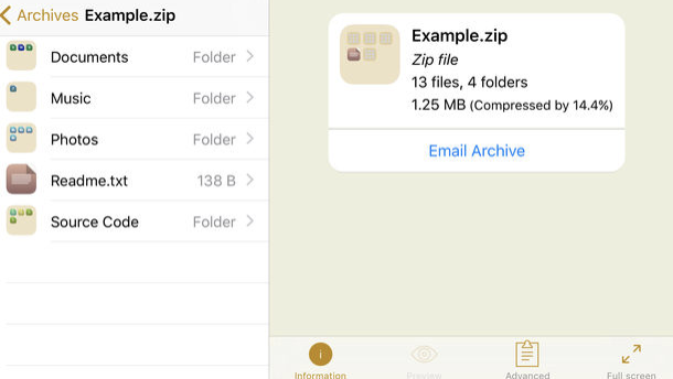Archives แอพสำหรับเปิดไฟล์ zip จากอีเมล์ หรือจะนำเข้ามาจากคอมพิวเตอร์ก็สามารถเปิดได้เช่นกันครับ ปกติ $2.99