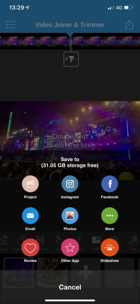 หลังจากที่ตัดต่อเสร็จเรียบร้อยแล้วสามารถบันทึกลงไปยัง iPhone หรือจะแชร์ไปยังโซเชียลต่างๆ ได้ทันทีอีกด้วย