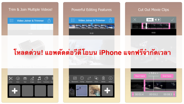 แอพที่เอามาแนะนำกันนี้คือแอพ Video Joiner & Trimmer Pro ซึ่งปกติขาย $1.99 นำมาแจกฟรีสำหรับผู้ใช้งาน iPhone โดยตัวแอพ สามารถตัดต่อวีดีโอ ใส่ข้อความ เสียงประกอบ เอฟเฟกต์ต่างๆ ทั้ง Transition, Effect Filter, Mosaic และอื่นๆ อีกเพียบเลยครับ