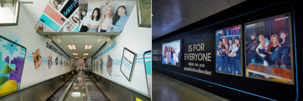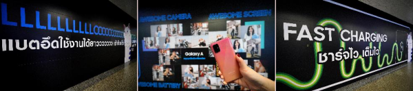 ให้กลายเป็น อินเตอร์แอคทีฟ แบรนด์ แกลเลอรี เป็นครั้งแรกในประเทศไทย ซึ่งนอกจากจะสะท้อนถึงภาพลักษณ์สนุกๆ สไตล์ Galaxy A แล้ว ยังบอกเล่าเรื่องราวความ Awesome สุดทุกเรื่องในเครื่องเดียวของสมาร์ทโฟนคู่ใจวัยรุ่น Galaxy A51 พร้อมยกแกลเลอรีสี่สาว แบล็กพิงก์ (BLACKPINK) ทั้ง เจนนี่ จีซู โรเซ่ และ ลิซ่า พรีเซ็นเตอร์ ซัมซุง กาแลคซี่ เอ ซีรีส์ มาแสดงกันแบบจัดเต็ม เริ่มตั้งแต่บันไดทางลงยาวไปจนถึงอุโมงค์ด้านในตัวสถานี โดยงานนี้ซัมซุงยังขนความพิเศษมาสำหรับเหล่าคอน