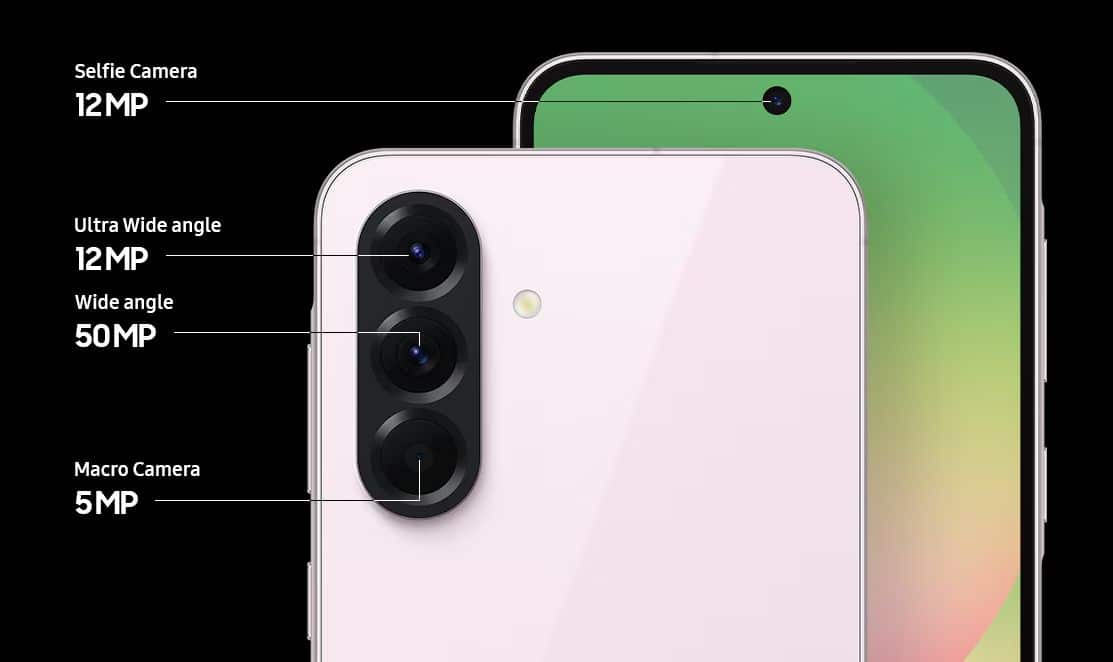 Galaxy A57 จะมีกล้องหน้า 12MP พร้อมด้วยกล้องหลัง 50MP + Ultra-Wide 12MP + Macro 5MP ครับ