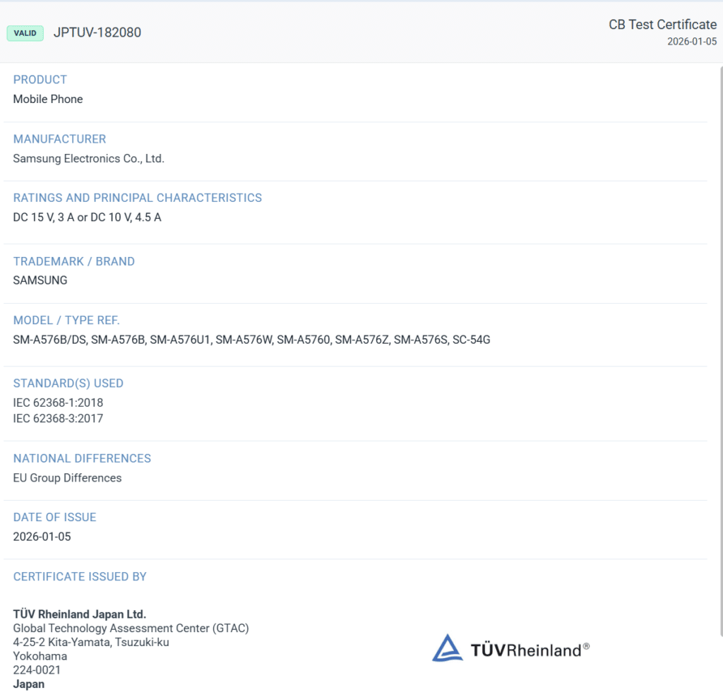 Samsung Galaxy A57 ใกล้ที่จะเปิดตัวอย่างเป็นทางการในเร็วๆ นี้แล้วครับ ซึ่งจะมาในช่วงใกล้เคียงกับ Galaxy S26 Series ซึ่งอาจเป็นได้ทั้งต้นเดือนกุมภาพันธ์นี้ หรือช่วงต้นเดือนมีนาคมเลย ล่าสุด มีสเปคหลักๆ หลุดออกมาแบบครบถ้วนเลยผ่านทาง TENAA ในจีน