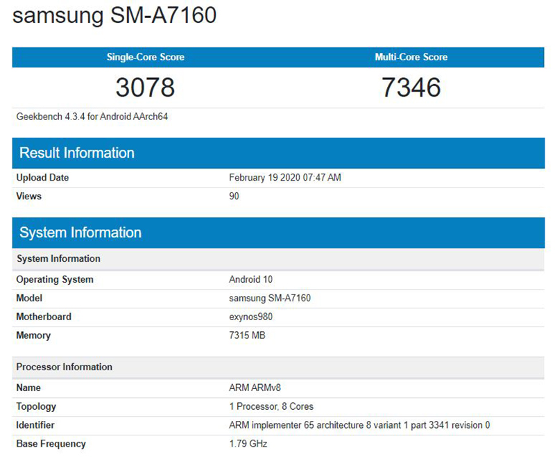 หลังจากที่ Samsung เปิดตัว Galaxy A71 ที่ใช้หน่วยประมวลผล Snapdragon 730 ไปเรียบร้อย ล่าสุด ในเวอร์ชัน 5G ก็จะมีด้วยเหมือนกัน โดยจะใช้หน่วยประมวลผล Exynos 980 แทน โดยตอนนี้ก็มีสเปคเผยบน Geekbench บางส่วนแล้ว