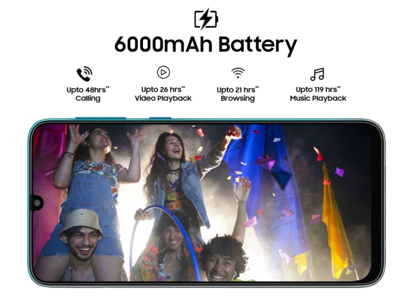 ภายในมาพร้อมกับหน่วยประมวลผล Exynos 9611 Octa Core, RAM 6GB + ROM 64/128GB พร้อมแบตเตอรี่ความจุถึง 6000mAh รองรับ Fast Charge 15W สามารถรับชมวิดีโอได้นานสูงสุด 26 ชั่วโมง และโทรศัพท์นาน 48 ชั่วโมง