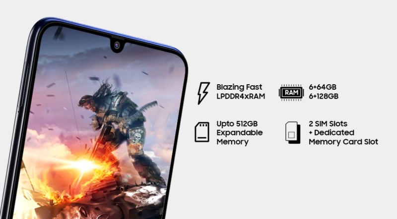 ภายในมาพร้อมกับหน่วยประมวลผล Exynos 9611 Octa Core, RAM 6GB + ROM 64/128GB พร้อมแบตเตอรี่ความจุถึง 6000mAh รองรับ Fast Charge 15W สามารถรับชมวิดีโอได้นานสูงสุด 26 ชั่วโมง และโทรศัพท์นาน 48 ชั่วโมง
