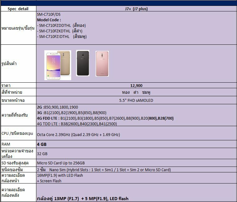 ก่อนหน้านี้ตามที่ได้รายงานไปแล้วว่า Samsung เตรียมเปิดจำหน่าย Galaxy J7+ ในไทย ล่าสุดประกาศราคาพร้อมวันจองออกมาแล้วครับ โดยจะวางจำหน่ายในราคา 12,900 บาท เปิดพรีออร์เดอร์ในวันที่ 1-17 ก.ย. 60 และเริ่มรับเครื่องวันที่ 22 ก.ย. 60