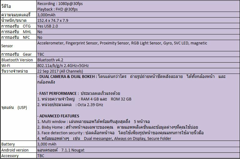 - RAM 4 gb ROM 32 gb เพิ่ม sd card ได้ถึง 256 gb / Octacore 2.39 GHz