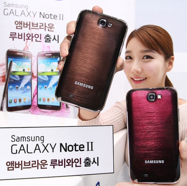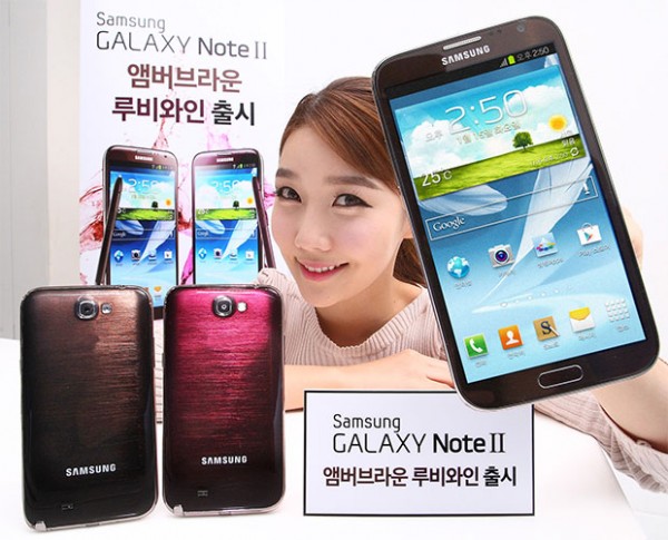 Samsung ประเทศเกาหลีใต้เปิดตัว “Galaxy Note II” ตัวเครื่อง 2 สีใหม่ ได้แก่ สีน้ำตาล (Amber Brown) และสีแดงทับทิม (Ruby Wine) พร้อมปากกา S Pen คู่กายสีเดียวกับตัวเครื่องอีกด้วย