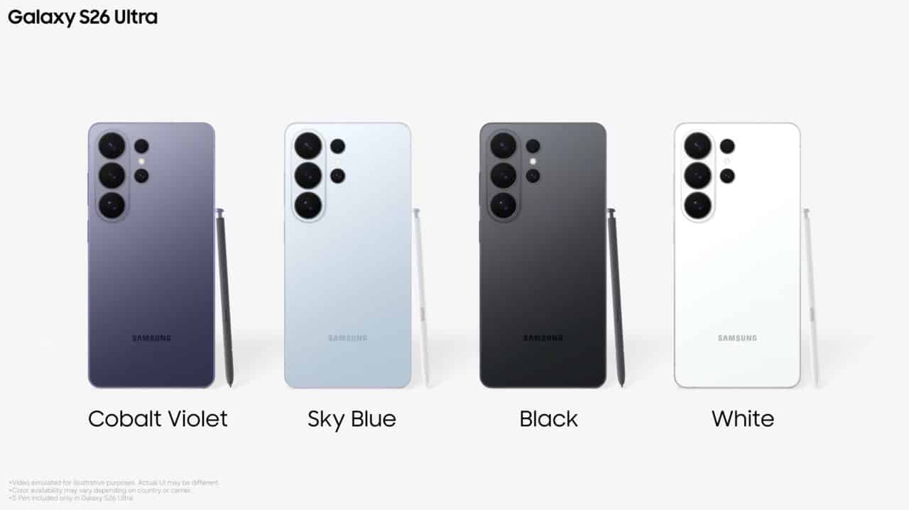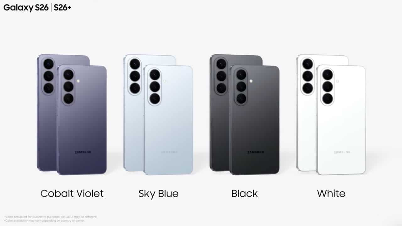 ในส่วนของ Galaxy S26 และ S26+ ก็จะมีดีไซน์ที่คล้ายกับรุ่นพี่ Ultra รวมถึงสีสันก็มีให้เลือก 4 สีหลัก Cobalt Violet, Sky Blue, Black และ White เช่นเดียวกันด้วย
