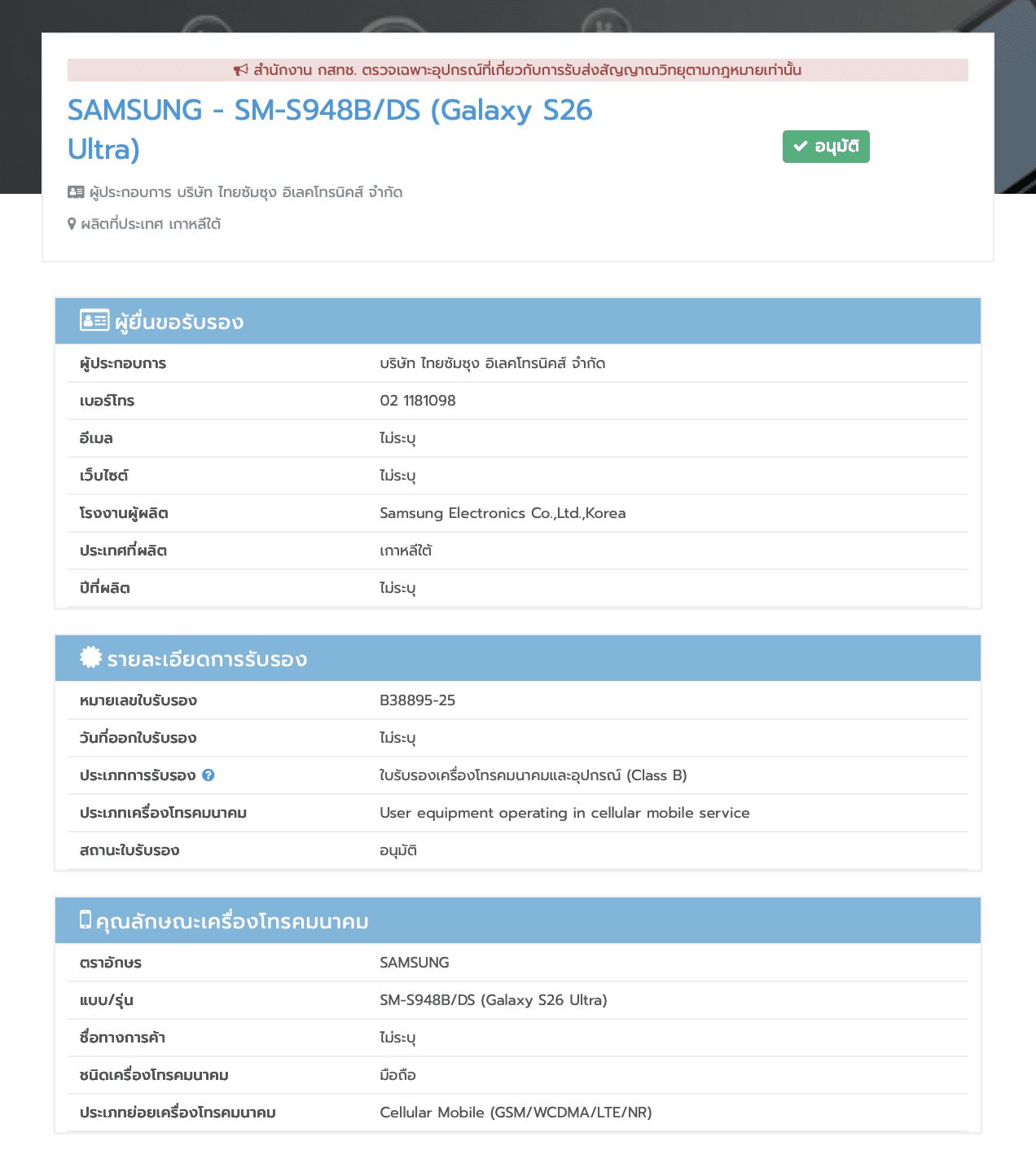 แต่การได้เห็นว่า Galaxy S26 Ultra ได้ผ่านการรับรองจาก กสทช. มาแล้วแบบนี้ ก็เป็นสัญญาณที่ดี ว่าเราคงได้เห็นกันในเร็ววันล่ะเนอะ รอติดตามกันได้เลยว่ารอบนี้ จะมีการปล่อยทีเซอร์แรกออกมาเมื่อไหร่ ?