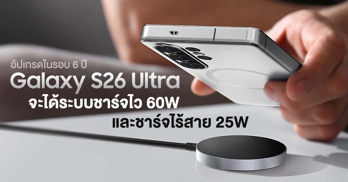 มีข่าวของ Galaxy S26 Series มาอัปเดตกันอีกหน่อยครับ รอบนี้พูดถึงเรื่องระบบชาร์จใหม่ ที่จะได้อัปเกรดในรอบ 6 ปีเลยนะ โดยเฉพาะชาร์จไวแบบไรสาย!