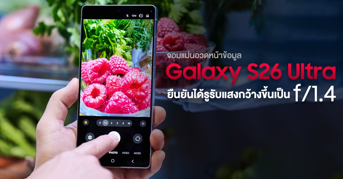 Galaxy S26 Ultra เคยมีข่าวลือก่อนหน้านี้ว่าจะได้อัปเกรดกล้องหลักใหม่ให้มีค่ารูรับแสงกว้างขึ้นกว่าเดิม จาก f/1.7 เป็น f/1.4 ล่าสุดจอมแม่น @UniverseIce ได้ออกมาอวดภาพข้อมูลกล้องยืนยันอีกครั้งว่ารุ่นนี้ได้ f/1.4 จริง ๆ นะ!