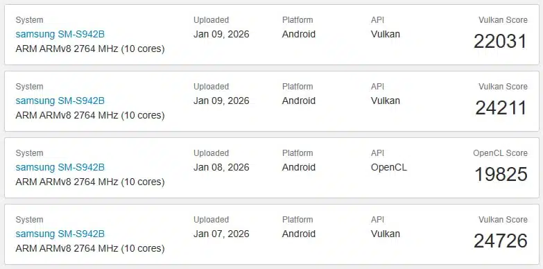 Galaxy S26 พร้อมชิป Exynos 2600 เผยคะแนน GPU บน Geekbench ครั้งแรก ทำแต้มเทียบ Snapdragon 8 Elite Gen 5