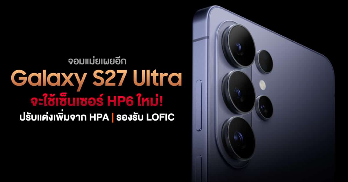Galaxy S26 Ultra เพิ่งจะเปิดตัวไปหมาด ๆ ล่าสุดก็มีข้อมูลของ Galaxy S27 Ultra เรือธงรุ่นถัดไปออกมาต่อเลย คราวนี่พูดถึงเรื่องกล้องหลักตัวใหม่ครับ ว่าอาจเปลี่ยนเซ็นเซอร์เป็น ISOCELL HP6 ที่มีเทคโนโลยีมากขึ้นอีก!