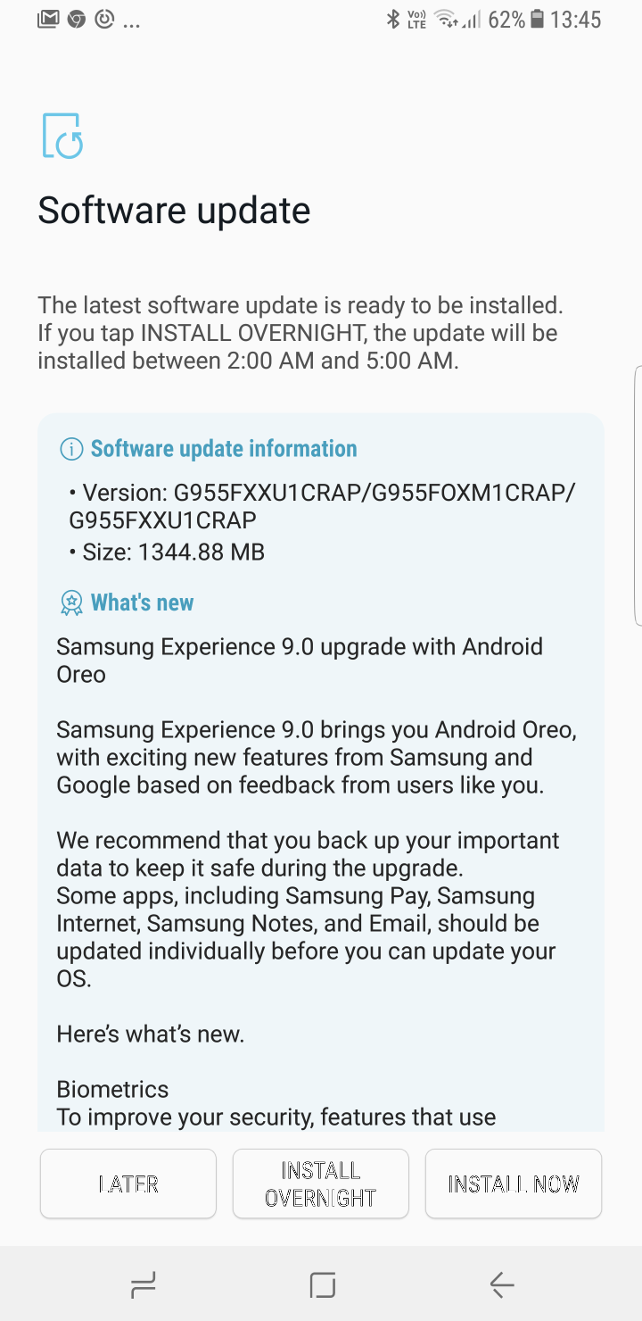 เมื่อสัปดาห์ก่อน Samsung ได้เริ่มออกอัปเดท Android 8.0 Oreo เวอร์ชั่นเต็มอย่างเป็นทางการครั้งแรกให้กับผู้ใช้งาน Galaxy S8 และ S8+ ในประเทศเนเธอร์แลนด์และเยอรมนี ซี่งมาพร้อมกับ Samsung Experience 9.0 เวอร์ชั่นใหม่ล่าสุด ด้วยขนาดไฟล์ประมาณ 487MB ตัวเลขเฟิร์มแวร์ G950/G955-FXXU1CRAP และในวันนี้ได้เริ่มทยอยอัปเดทให้กับผู้ใช้งานในอินเดีย โปแลนด์ และฝรั่งเศส แต่สำหรับผู้ใช้งานที่เคยเข้าร่วมโครงการ Beta ก่อนหน้านี้เท่านั้น