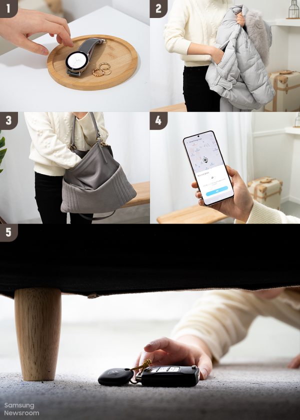ในทางกลับกัน บางทีเรามักลืมว่าวางสมาร์ทโฟนไว้ที่ไหนของบ้าน จะโทรเข้าก็ดันปิดเสียงเอาไว้อีก ซึ่งตัวช่วยที่จะทำให้ทุกอย่างง่ายขึ้นคือการเชื่อมต่อ SmartTag ไว้กับสมาร์ทโฟน เพราะมีฟีเจอร์ ‘Locate smartphone with Tag’ ที่สามารถกดปุ่มบนSmartTag สองครั้ง เพื่อให้สมาร์ทโฟนเครื่องดังกล่าวส่งเสียง แล้วตามหาเจอในที่สุด
