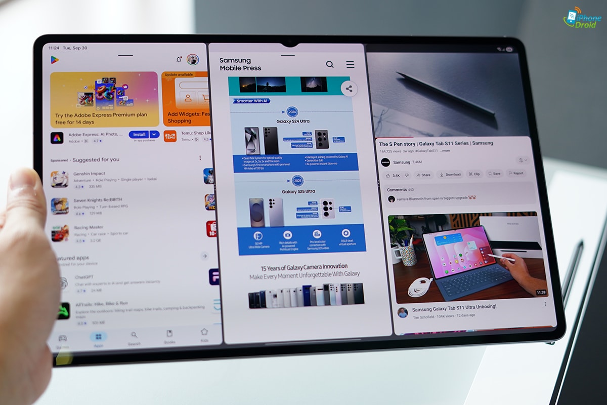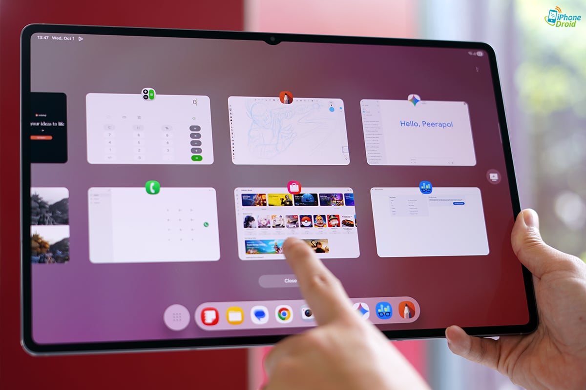 แต่ไฮไลท์สำหรับของ One UI 8 บนแท็บเล็ต Samsung ก็คงหนีไม่พ้นเรื่องการทำงาน Multi-tasking ที่จูนมาดีมาก ๆ ทั้งการแบ่งหน้าจอ ใช้งานหลายแอปพร้อมกันแบบ Multi Window จะแบ่งแอปใหญ่ฝั่งหนึ่ง แอปเล็ก 2 อันไว้อีกฝั่งก