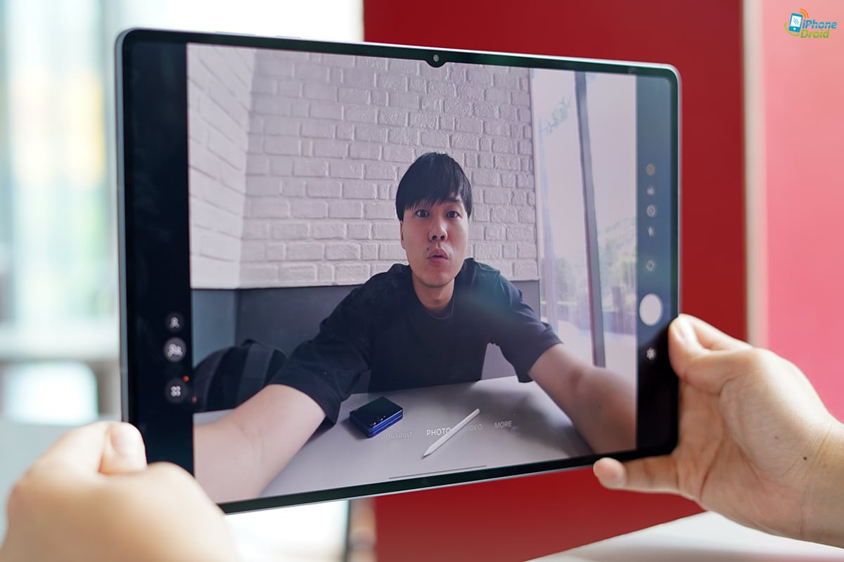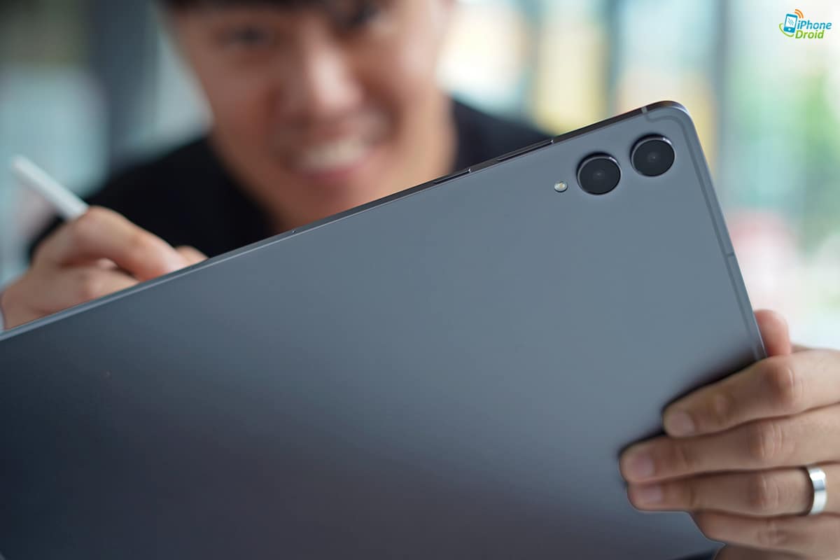 อ๊ะ…และอีกจุดที่เปลี่ยนแปลงไปที่ด้านหน้าของ Galaxy Tab S11 Ultra ก็คือรอยบากบนหน้าจอเนาะ มองผ่าน ๆ ก็รู้ได้ทันทีว่าเล็กลง รอบนี้ปรับมาเป็นแบบ Infinity-V แทน Infinity-U แล้วนะ มอบมุมมองที่เต็มขึ้นอีกนิด