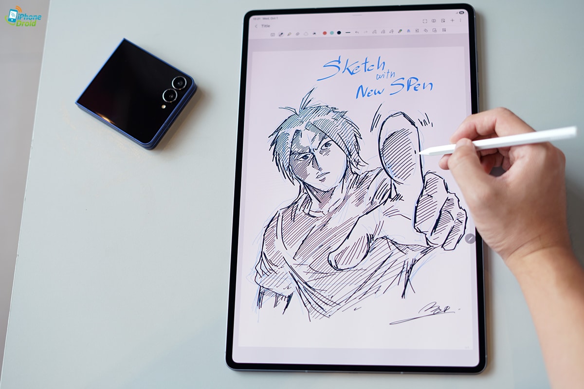 แต่อย่างที่บอกว่าสายวาดน่าจะถูกใจ S Pen ใหม่นี้แน่ ใช้งานร่วมกับ 3rd Party อื่น ๆ ได้อย่างลงตัวแล้วจริง ๆ อย่างการวาดรูปเราโหลด SketchBook มาใช้งาน ก็รู้สึกว่าการตอบสนองของ S Pen นั้นดีมาก ลงน้ำหนักได้หลายระดับ ให้การวาดสนุกและมืออาชีพขึ้นไปอีก