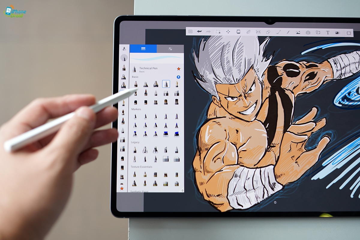- ตัวเลือกปากกา – เราสามารถสลับปากกา, ปรับขนาด, สีที่ใช้ ได้จากการแตะตรงนี้ โดยไม่ต้องไปแตะที่แถบเมนู