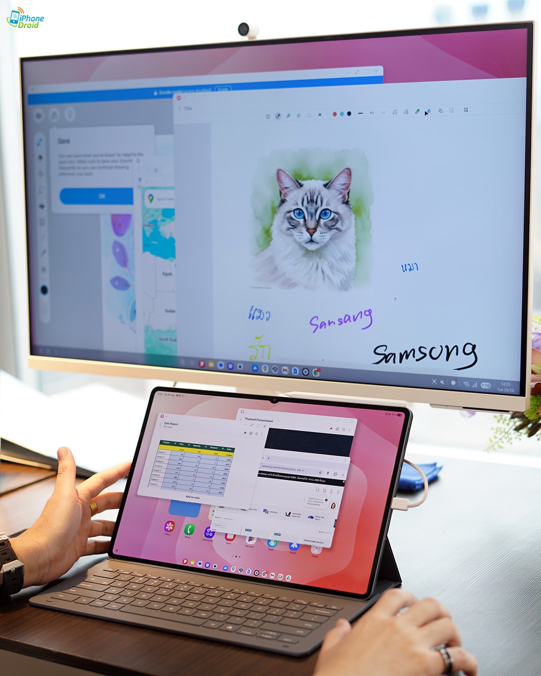 หรือถ้าใครอยากเสริมการทำงานให้มีพื้นที่มากขึ้น ก็ต่อออกจอแยก แล้วเอาหน้าต่างแอปย้ายไปอีกจอ เพิ่มพื้นที่การทำงานก็ยังได้ เรียกว่าอัปเกรดการทำงานด้าน Multi-Tasking อย่างแท้จริงเลยล่ะครับ