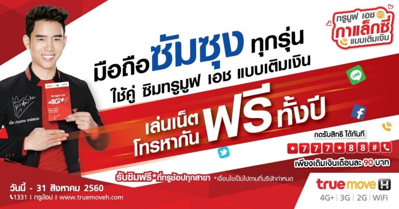 Truemove H ออกแคมเปญ “Truemove H Galaxy แพ็กเกจ แบบเติมเงิน” พร้อมกับเปิดตัวพร้อมด้วยพรีเซนเตอร์ขวัญใจมหาชน “เบิ้ล-ปทุมราช อาร์สยาม” ร่วมเดินสายประชาสัมพันธ์ย่านฟิวเจอร์ ปาร์ค รังสิต เพื่อมอบสิทธิพิเศษสำหรับลูกค้าซิมเติมเงินที่ใช้มือถือ Samsung 4G/3G ทุกรุ่น ทั้งเครื่องปัจจุบันหรือเครื่องใหม่ รับเน็ตฟรี โทรฟรีในเครือข่ายแบบไม่อั้น ตลอด 24 ชั่วโมง นานทั้งปี มาดูรายละเอียดกันเลย