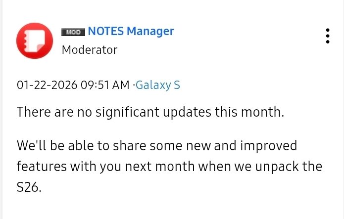นอกจากจะยืนยันช่วงเวลาการเปิดตัวแล้ว แต่ผู้ดูแลระบบของ NOTES ยังยืนยันว่าจะมีฟีเจอร์ใหม่ๆ เพิ่มเข้ามาในแอป Samsung Notes รวมถึงการพัฒนาด้าน AI และการอัปเกรดเหล่านี้จะรวมอยู่ในซอฟต์แวร์อย่างเป็นทางการที่จะเปิดตัวพร้อมกับ S26 Series ครับ