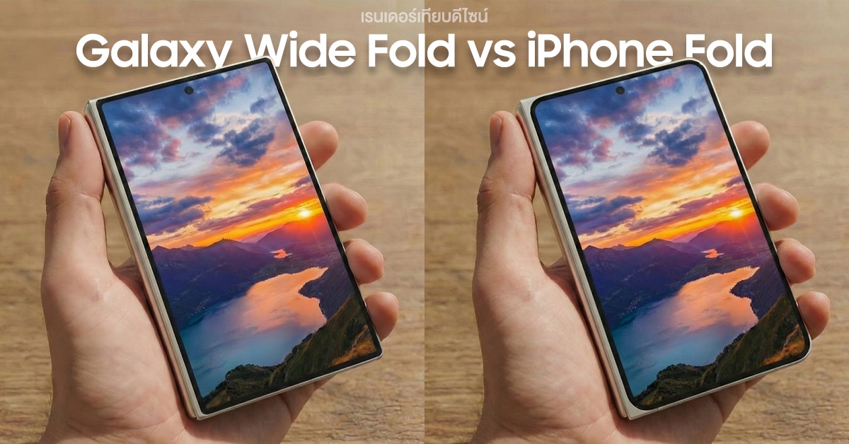 โดยในภาพชุดนี้เราจะได้เห็นว่า Galaxy Wide Fold (ชื่อไม่ทางการ) เทียบกับ iPhone Fold ที่ใช้อัตราส่วนจอด้านนอกแบบกว้าง เป็นทรงใหม่ ๆ ที่เราไม่ค่อยได้เห็นจาก Samsung ก่อนหน้านี้