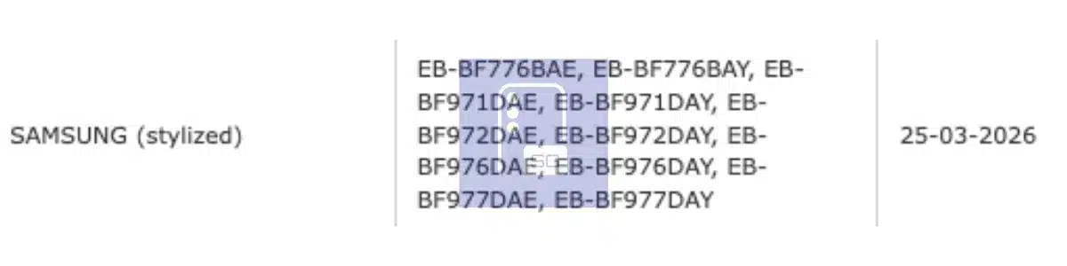 แบตเตอรี่สำหรับจอพับรุ่นใหม่เพิ่งผ่านการรับรอง BIS ของอินเดีย ซึ่งโดยปกติแล้วจะเกิดขึ้นค่อนข้างช้าในขั้นตอนการผลิต ซึ่งหมายเลขรุ่นแบตเตอรี่หลายรุ่นที่เชื่อมโยงกับ Fold8, Flip8 และ Wide Fold แม้ว่า Samsung ยังไม่ได้ยืนยันชื่ออย่างเป็นทางการก็ตาม ส่วนผลิตภัณฑ์ด้านเสียงใหม่คาดว่าจะเป็น Galaxy Buds Able (รุ่น SM-U600) ที่มีข่าวหลุดออกมาเมื่อเร็วๆ นี้ครับ