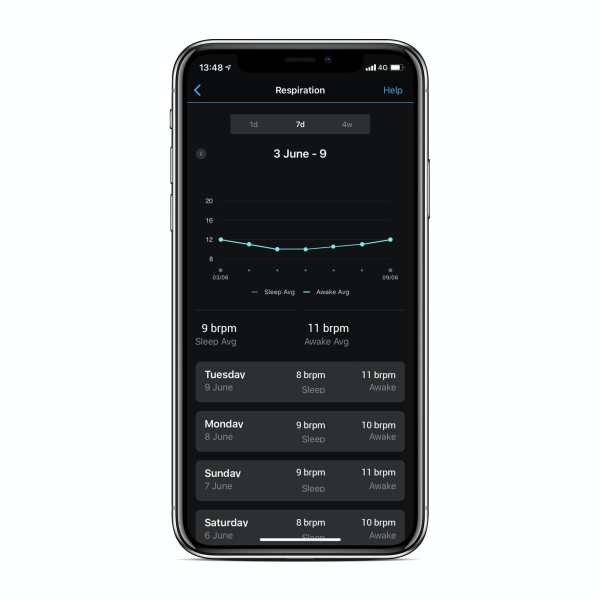 5 ฟังก์ชันอัตราการหายใจ (Respiratory Rate) มีเทคนิคในการหายใจต่าง ๆ มากมายที่ช่วยให้ผ่อนคลายความตึงเครียด เพิ่มสมาธิ และเพิ่มคุณภาพการนอนให้ดีขึ้น โดยปกติอัตราหายใจจะอยู่ที่ 12-20 ครั้งต่อนาที และเมื่อเวลาออกกำลังกาย ในคนที่มีภาวะร่างกายแข็งแรงจะมีน้อยครั้งกว่าคนปกติ ซึ่งบ่งชี้ถึงการดูแลสุขภาพที่ดี และสภาพร่างกายที่แข็งแรง