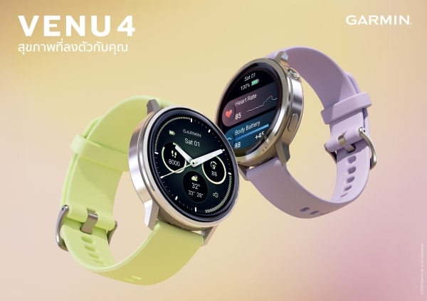 GARMIN ผู้นำด้านผลิตภัณฑ์จีพีเอสสมาร์ทวอทช์ระดับโลก เปิดตัว Venu 4 สมาร์ทวอทช์รุ่นใหม่ล่าสุดในตระกูล Venu โมเดลสุดฮิตของสายออกกำลังกายดูแลสุขภาพจัดเต็มฟีเจอร์ด้านสุขภาพและการออกกำลังกายอย่างครบครัน ให้ผู้ใช้งานรู้จักและเข้าใจร่างกายของตนเองได้ดียิ่งกว่าที่เคย เสมือนมีโค้ชส่วนตัวที่พร้อมเข้าใจและคอยให้คำแนะนำเฉพาะบุคคลสำหรับผู้ใช้งานเพื่อพิชิตทุกเป้าหมายในการออกกำลังกายและการดูแลสุขภาพ โดย Venu 4 จะเป็นตัวช่วยสำคัญในการติดตามการนอน แนวโน้มสุขภาพและบันทึกไลฟ์สไตล์ประจำวัน เพื่อให้ผู้ใช้งานได้เห็นว่าไลฟ์สไตล์การใช้ชีวิตของตนเองนั้นส่งผลต่อสุขภาพโดยรวมอย่างไร Venu 4 มากับตัวเรือนโลหะดีไซน์ทันสมัย ลำโพงและไมโครโฟนในตัว พร้อมไฟฉาย LED ช่วยให้ผู้สวมใส่มองเห็นในที่มืดได้ชัดเจนยิ่งขึ้น และแบตเตอรี่อายุการใช้งานยาวนานสูงสุดถึง 12 วันในโหมดสมาร์ทวอทช์ หมดกังวลเรื่องการถอดชาร์จระหว่างคืน จึงสามารถติดตามข้อมูลสุขภาพได้อย่างต่อเนื่องตลอด 24 ชั่วโมง ทั้งคะแนนการนอนหลับ สถานะความแปรปรวนของอัตราการเต้นหัวใจ (HRV) รวมถึง Body Battery หรือระดับพลังงานของร่างกาย และข้อมูลสุขภาพที่สำคัญอื่นๆ อีกมากมายที่จะช่วยให้ผู้สวมใส่เห็นภาพรวมสุขภาพได้ครบถ้วนมากยิ่งขึ้น