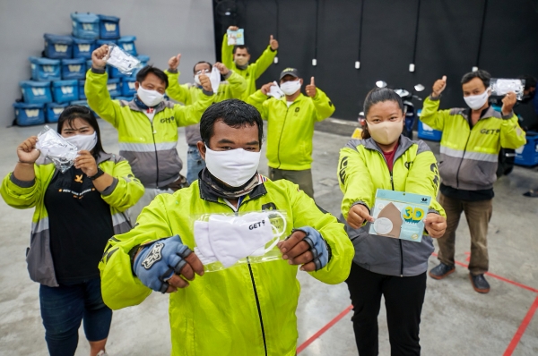 ในขณะที่สถานการณ์โรค COVID-19 ยังคงต่อเนื่อง GET (เก็ท) เดินหน้าในการสนับสนุนพาร์ทเนอร์คนขับและร้านอาหาร โดยการแจกหน้ากากผ้ากว่า 20,000 ชิ้น ให้กับทั้งพาร์ทเนอร์คนขับและร้านอาหารขนาดเล็กและขนาดกลางที่มีความต้องการใช้หน้ากากเพื่อการป้องกันโรคในการทำงานในทุกวัน
