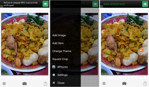 สำหรับ iOS หลังจากที่โหลดไอคอนต่าง ๆ แล้วเปิดแอพ Phonto – Text on Image ที่โหลดไว้ขึ้นมาครับ เลือกภาพที่ต้องการใส่ไอคอนมาครับ จากนั้นเลือกที่มุมขวาล่าง (ไอคอน 3 ขีด) แล้วเลือก Add Image เพื่อใส่ไอคอนสีส้มลงไปครับ