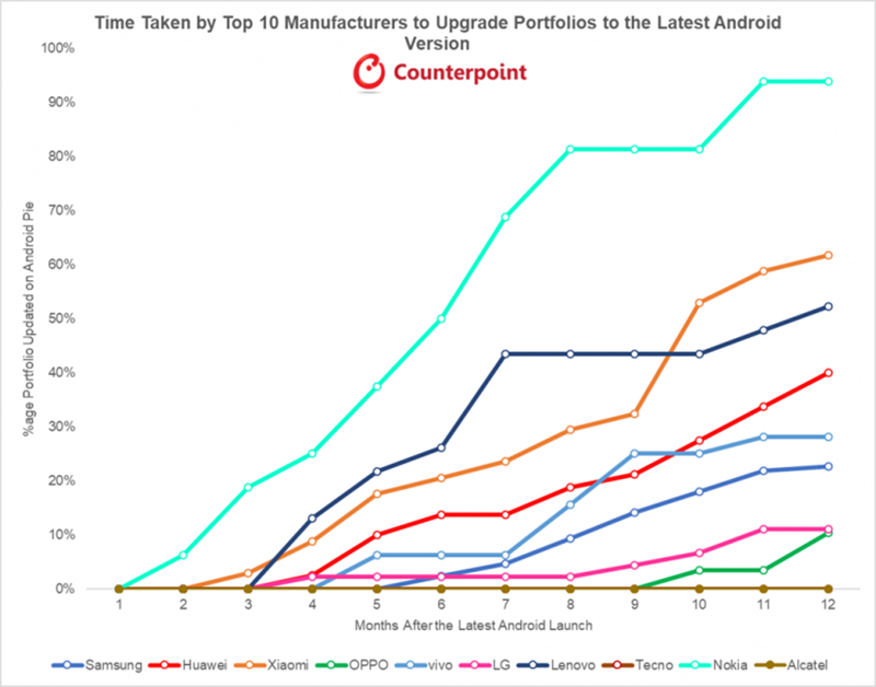 ทั้งนี้ส่วนของความเร็วในการอัปเดทสมาร์ทโฟนเป็นระบบปฏิบัติการ Android 9 Pie ฝั่งของ Nokia ก็ทำได้เป็นที่ 1 เหมือนเดิม โดย Counterpoint ระบุว่า Nokia สามารถอัปเดทให้สมาร์ทโฟนมากกว่า 50% ของจำนวนที่วางจำหน่ายตั้งแต่ปี 2018 โดยอันดับ 2 และ 3 ตกเป็นของ Xiaomi และ Lenovo