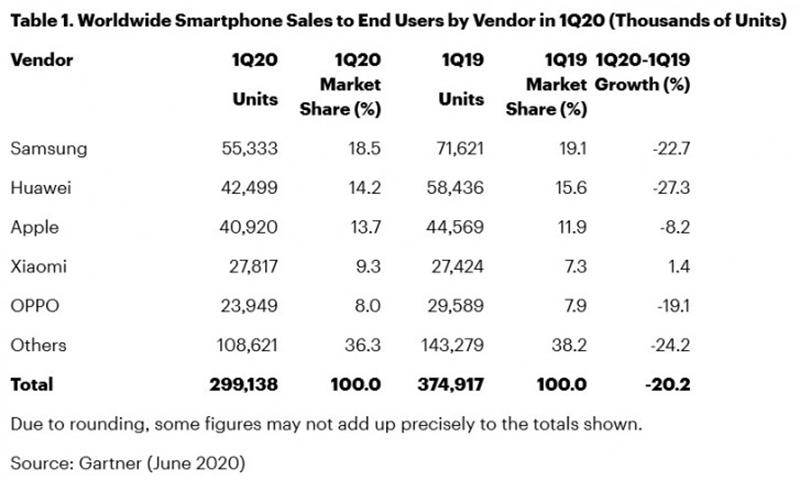คงไม่ใช่เรื่องแปลกอะไรในตอนนี้สำหรับสถานการณ์ยอดขายของสมาร์ทโฟนที่ลดลงชัดเจน ซึ่ง Gartner รายงานว่าตลาดสมาร์ทโฟนทั่วโลกมียอดขายลดลงถึง 20.2% ในไตรมาสที่ 1 ปี 2020 (เทียบกับปี 2019) เพราะการระบาดของ COVID-19