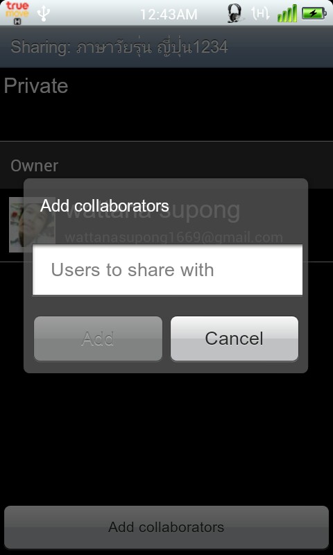 การแชร์ไฟล์ ก็แค่ใส่อีเมล์หรือชื่อผู้ใช้ที่เราต้องการแชร์ครับ