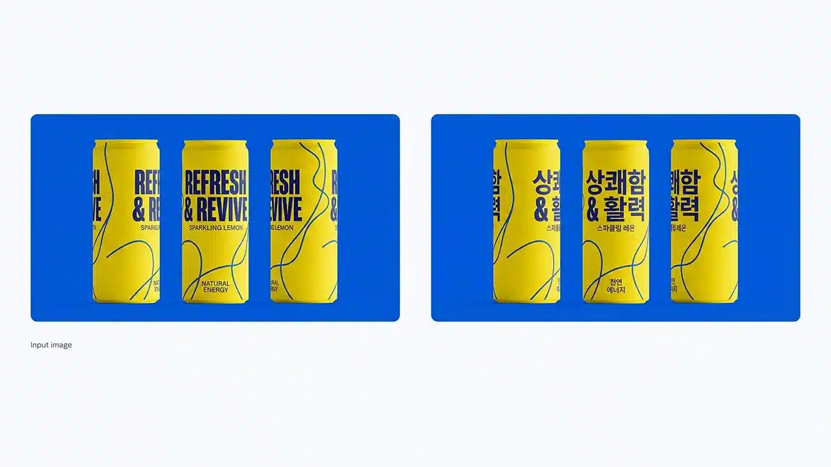 ซึ่งก็มีตัวอย่างในการใช้งาน Prompt “แปลข้อความภาษาอังกฤษทั้งหมดบนกระป๋องสีเหลืองและสีน้ำเงินสามอันเป็นภาษาเกาหลี ในขณะที่ส่วนอื่น ๆ ยังคงเหมือนเดิม” ซึ่งจะได้ผลลัพธ์ตามภาพด้านล่างนี้