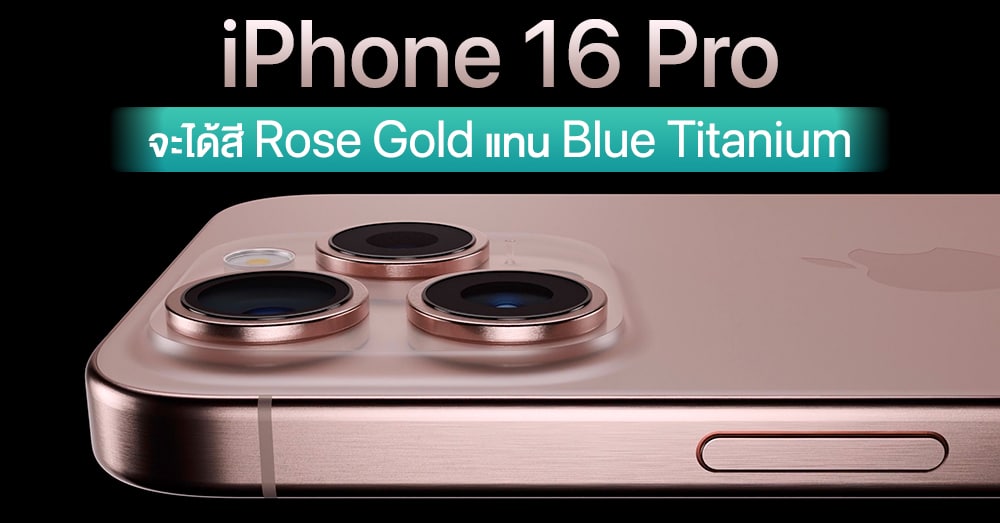 โดย Mark Gurman ได้เผยข้อมูลเรื่องสีสันล่าสุดว่า iPhone 16 Pro จะมีการปรับเปลี่ยนสีใหม่อีกครั้ง โดยสีน้ำเงิน Blue Titanium ตอน 15 Pro จะถูกแทนที่ด้วยสี Rose Gold นั่นเอง