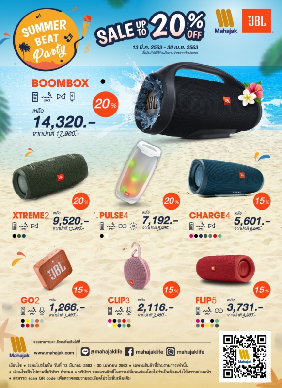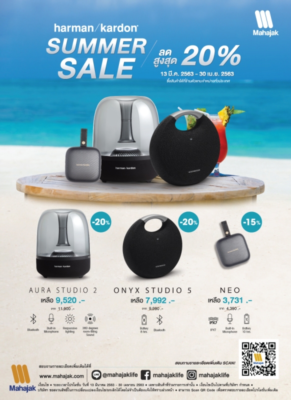 ขอต้อนรับเข้าส่วงช่วง Summer ด้วยโปรโมชั่นสุดว้าวจาก Harman Kardon และ JBL ลดสูงสุดถึง 20% โดยรายละเอียดสินค้าที่ร่วมรายการมีดังต่อไปนี้