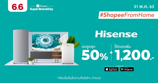 พบกับ แคมเปญ Hisense x Shopee Super Brand Day: Super Day Super Deal กับ Hisense ในวันที่ 31 พฤษภาคม 2563 ที่มาพร้อมกับโปรโมชั่นเด็ด ได้แก่