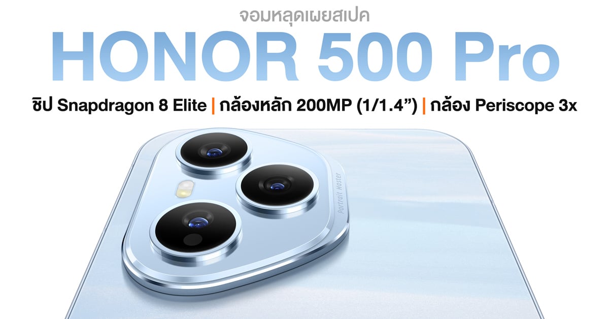 จอมหลุดเผยสเปค HONOR 500 Pro ได้กล้อง 200MP | ชิป Snapdragon 8 Elite