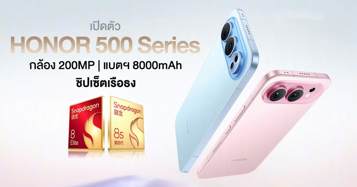 เปิดตัว HONOR 500 Series กล้องหลักจัดเต็ม 200MP | แบตฯใหญ่ 8000mAh | ชิป Snapdragon 8-Series!