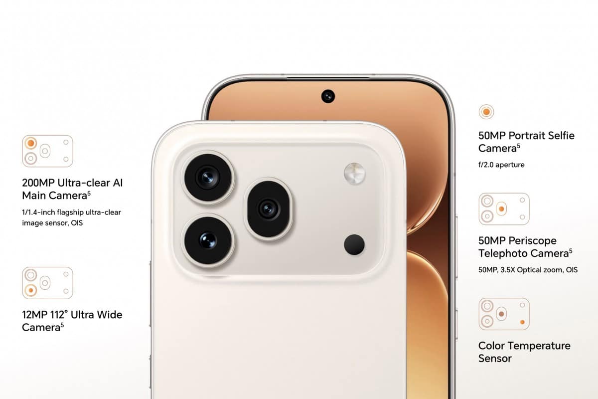 เรื่องกล้องรุ่น 600 Pro มีข้อได้เปรียบด้วยเลนส์ Periscope Telephoto ความละเอียด 50MP พร้อมซูมออปติคอล 3.5x โดยวสิ่งที่เหมือนกันคือเลนส์หลักความละเอียด 200MP (เซ็นเซอร์ขนาด 1/1.4″) และเลนส์ Ultra-Wide 12MP พร้อมด้วยกล้องหน้า 50MP เท่ากันครับ