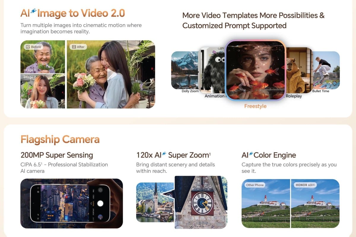 HONOR 600 มาพร้อมชิป Snapdragon 7 Gen 4 จับคู่กับ RAM สูงสุด 12GB + ROM 512GB ขณะที่ 600 Pro ใช้ชิป Snapdragon 8 Elite ที่มีประสิทธิภาพสูงกว่า โดยที่แบตเตอรี่ฝั่งยุโรปจะมีความจุ 6400mAh ซึ่งน้อยกว่ารุ่นในเอเชียที่ให้มาถึง 7000mAh ทั้งนี้ ก็ยังรองรับการชาร์จด้วยสาย 80W และการชาร์จย้อนกลับสูงสุด 27W โดยรุ่น 600 Pro ยังเพิ่มการรองรับการชาร์จไร้สาย 50W อีกด้วย