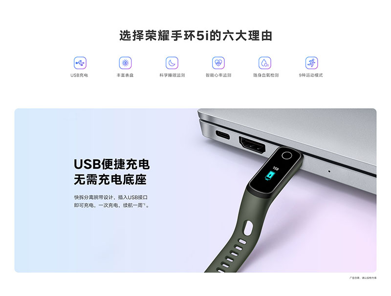 หลังจากที่ Honor เปิดตัว Honor Band 5 ไปเมื่อช่วงกลางปี ตอนนี้ทางบริษัทได้เปิดตัวออกมาอีกรุ่นในราคาที่ถูกลงอย่าง Honor Band 5i แต่ก็ยังคงมีดีไซน์คล้ายเดิมอยู่ และรองรับการชาร์จในตัวด้วยพอร์ต USB Type-A โดยไม่จำเป็นต้องใช้แท่นชาร์จอีกต่อไป